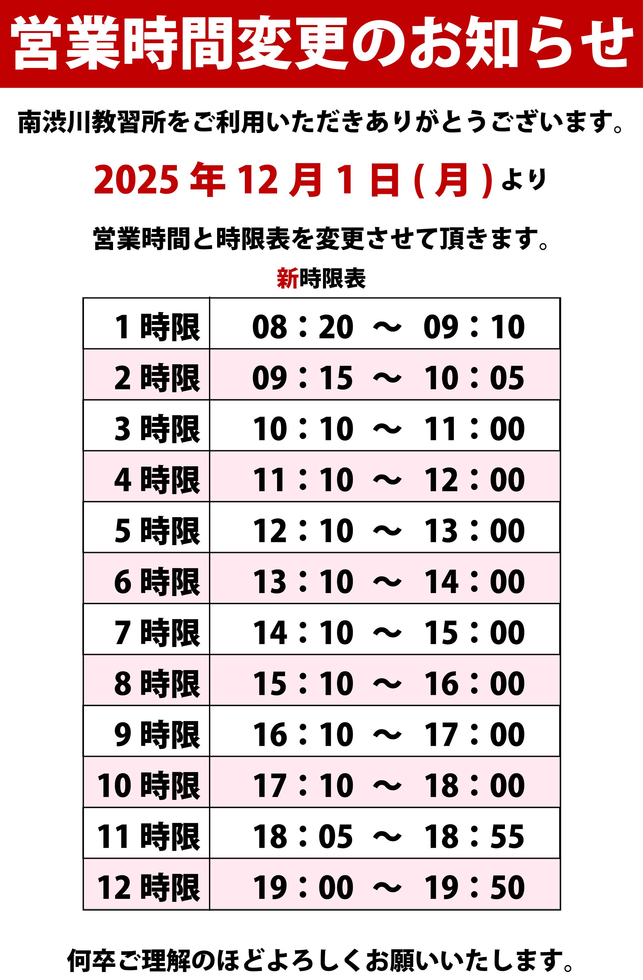 営業時間変更のお知らせ〔重要〕