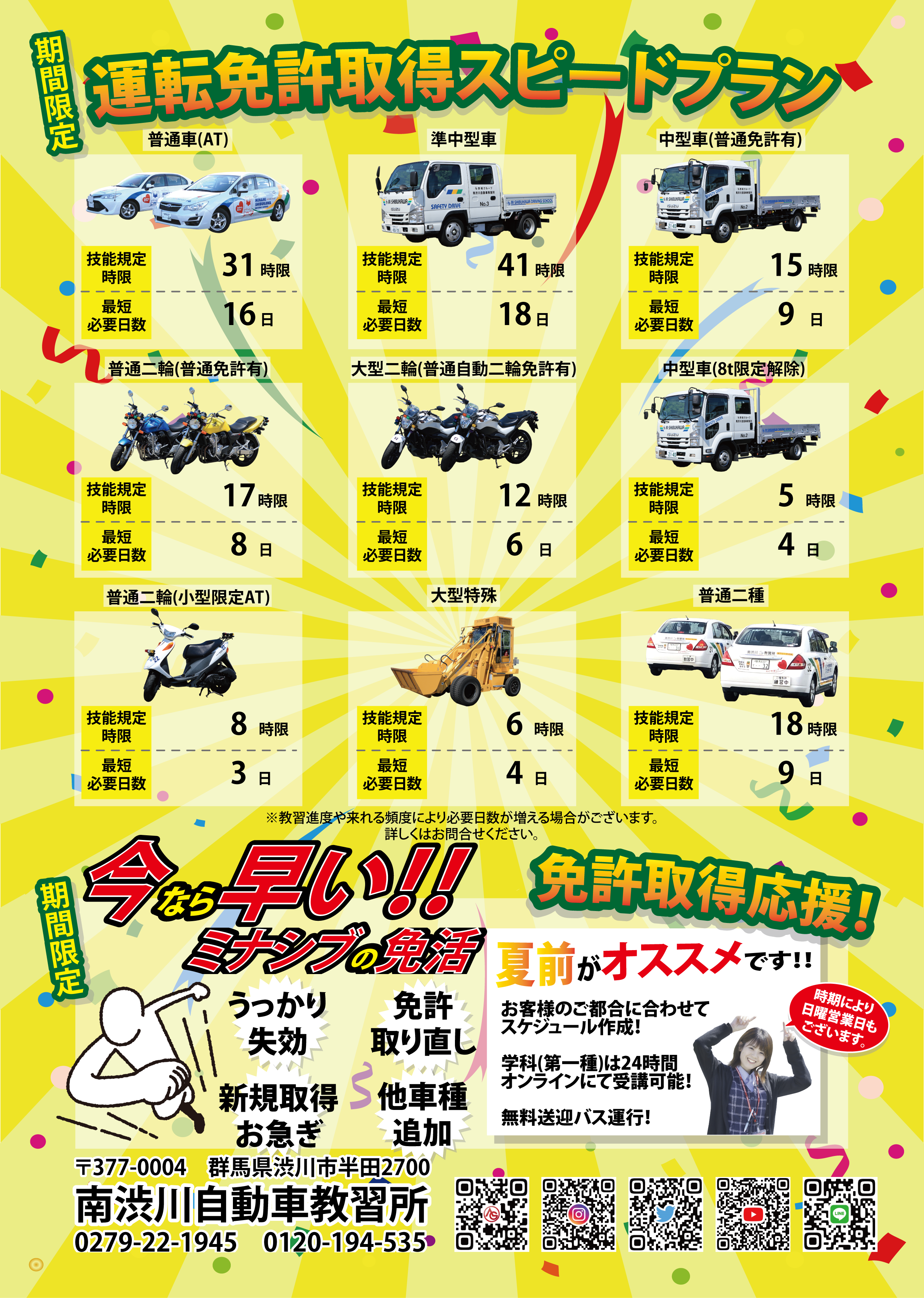 ・普通車・準中型車・中型車・大型特殊・普通二種